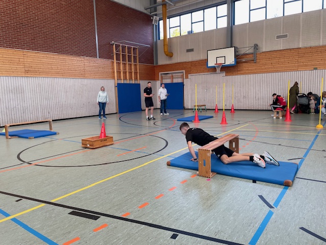 Die Teilnehmer konnten sich in einer Reihe von kreativen und abwechslungsreichen Disziplinen messen: Vom „Tischtennisball-Weitwurf“ über das intensive „30-Sekunden-Schlußsprung auf ein Kastenteil“ und den „Bumeranglauf“ bis hin zum „Memorylauf“. Auch ein „30 Meter fliegender Sprint“, ein „Hürdenlauf“ und als krönender Abschluss ein herausfordernder Hindernislauf gehörten zu den Aufgaben. Jede Disziplin stellte dabei die Sportlerinnen und Sportler auf unterschiedliche Weise auf die Probe und forderte nicht nur körperliche Fitness, sondern auch Geschicklichkeit und Konzentration.