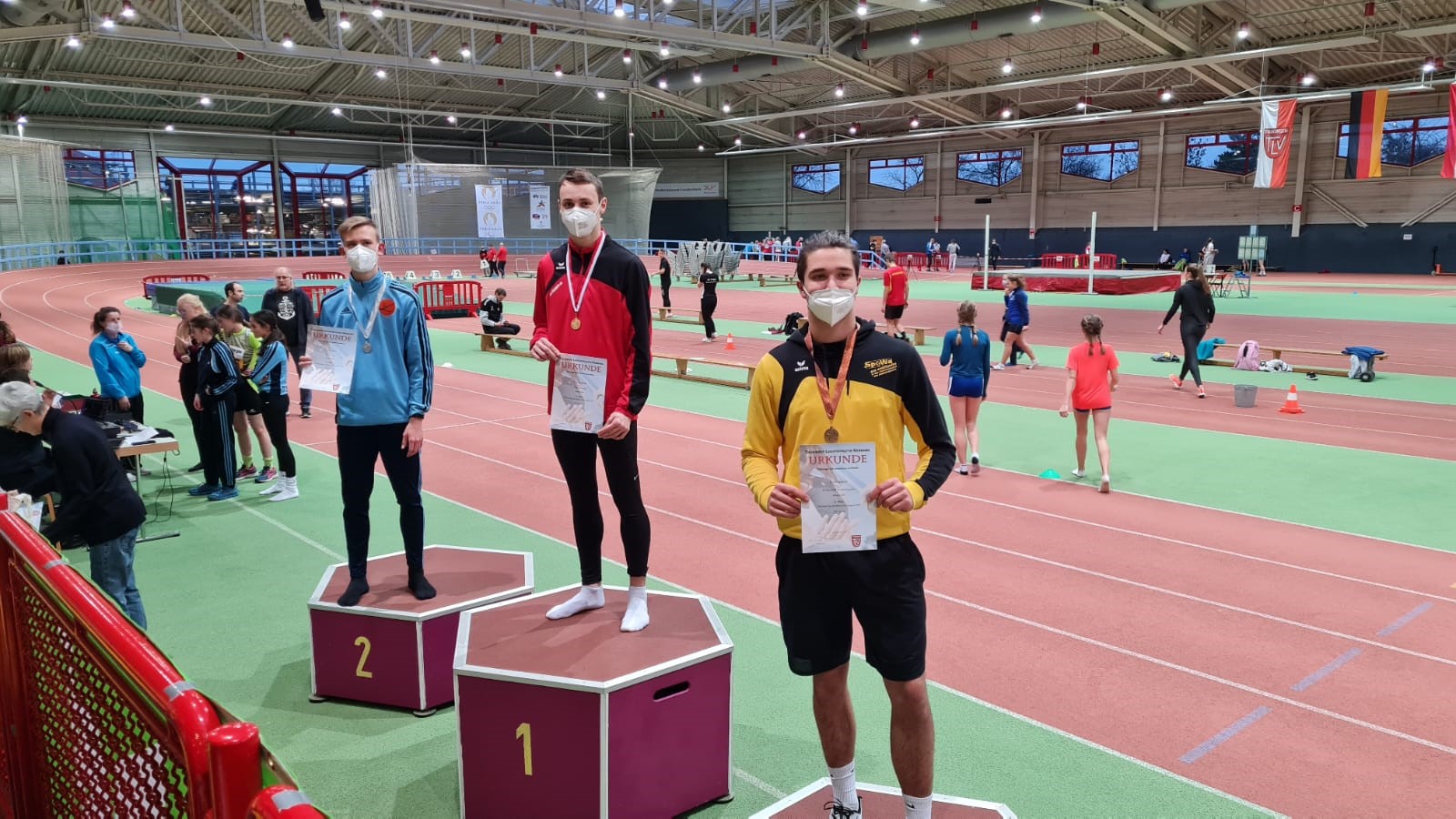 Luca allein stand sagenhafte 5mal auf dem Podest. Gold gewann er im Hochsprung mit 1,35m – Silber beim Weitsprung (4,23m) und 60m Hürde (11,60s) und um den Medaillensatz zu komplettieren holte er Bronze beim Kugelstoßen (7,41m) und im 60m Sprint (8,87s).